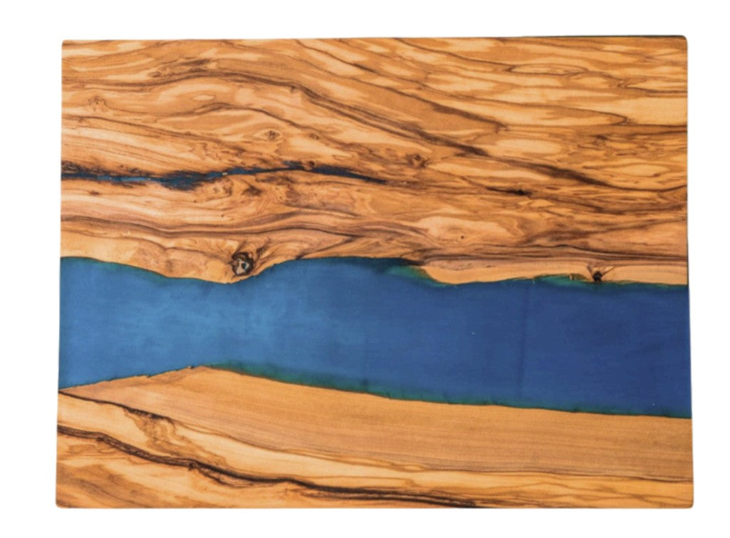 - Olive Wood with Resin River (Rectangle 15.65 x 11.7 x 0.6 in)